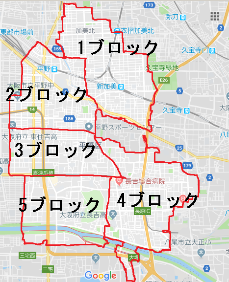 (長吉出戸・長吉川辺・長原・長吉南・長吉六反・長吉東)